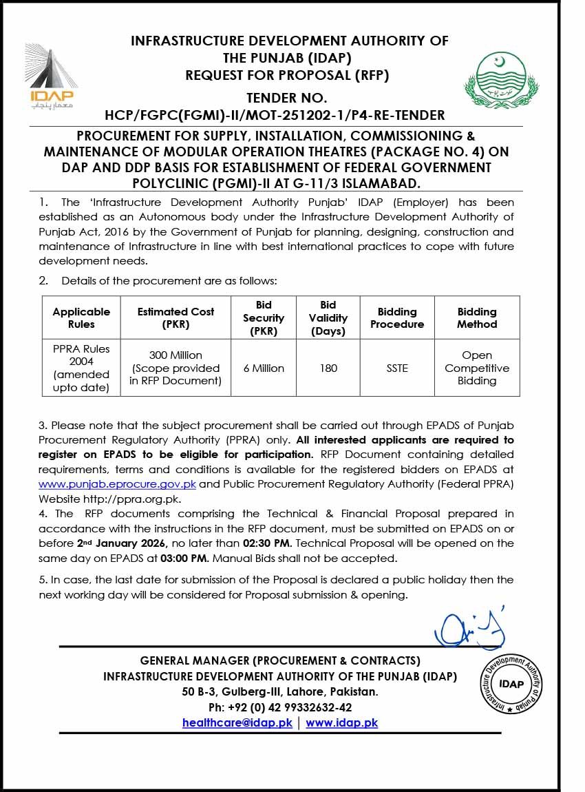 Modular Operation Theatres (Package No. 4) for “Establishment of Federal Government Polyclinic (PGMI)-II ...